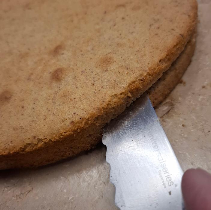 in die Tortenform füllen, bei 180°C etwa 35 min backen und danach auskühlen lassen.